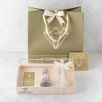 Special flower tray, size 75 cm (flower type depends on availability) — Half Lira, 22K gold — Half tola Super Mori incense — White musk