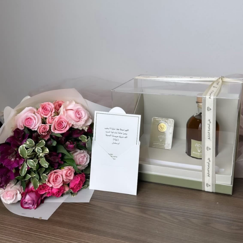 صينية ورد سبيشل مع بوكس نص ليره + بخور + مسك