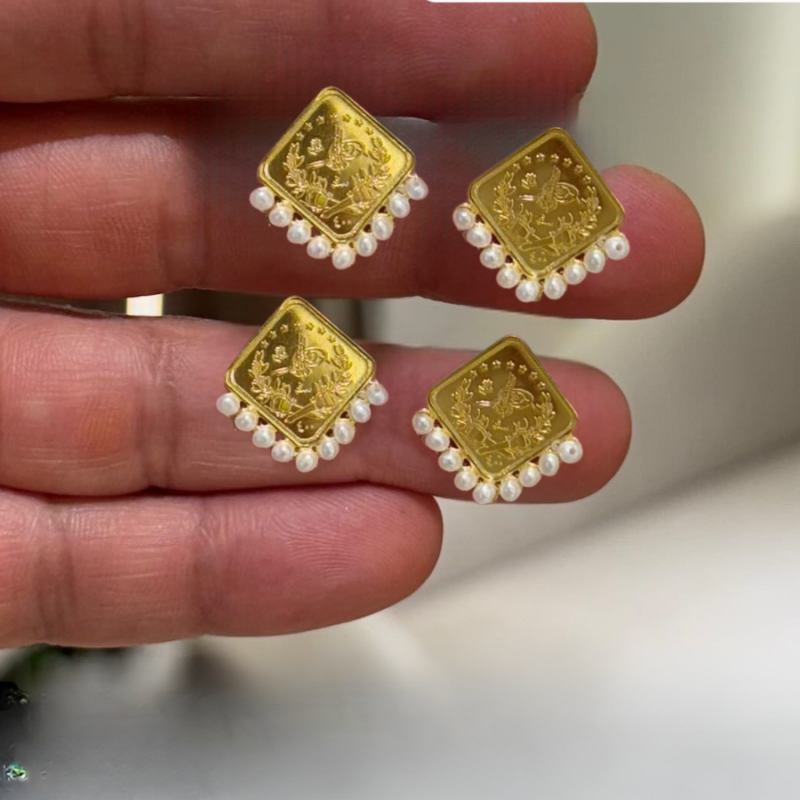 Quarter Lira Girl Earrings with Pearl and Bukhoor